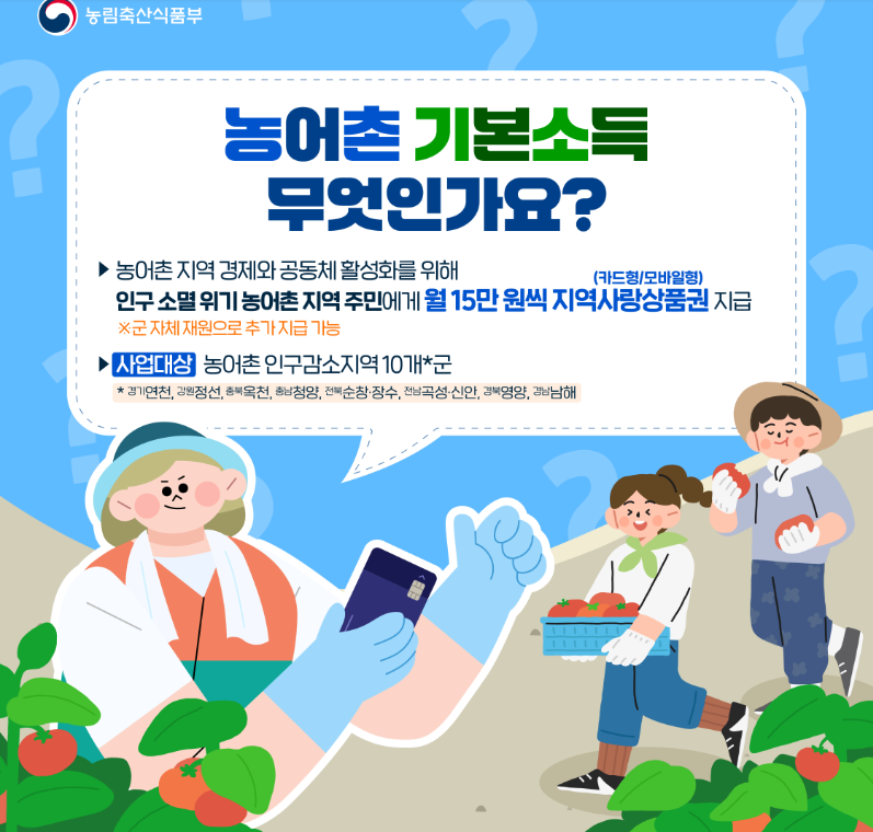 | 농어촌 기본소득 대상 | 10개 시·군 주민등록 및 실거주 | 월 15만 원 지역사랑상품권 |