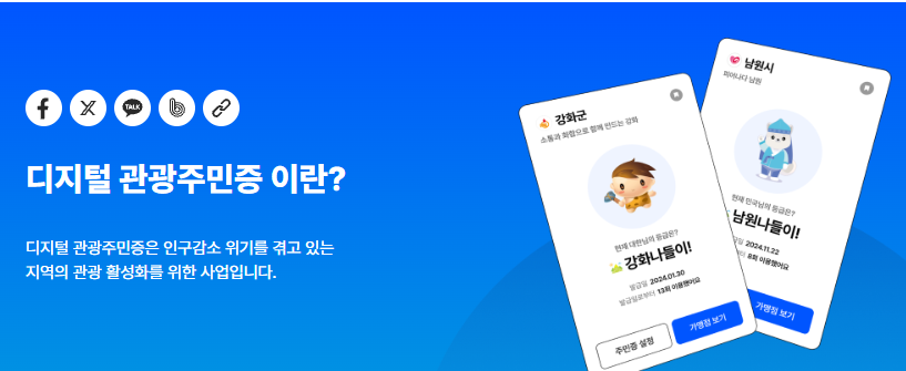 디지털 관광주민증은 지역에 실제로 거주하지 않아도 ‘디지털 주민’ 자격을 부여받아 다양한 관광 혜택을 받을 수 있는 제도입니다. 단순한 이벤트가 아니라 지역경제 활성화를 위한 정책 사업으로 운영되고 있습니다.