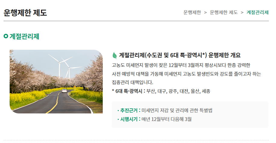 운행제한 제도는 국가 기준을 바탕으로 하지만 지자체별 조례 및 대기질 수준에 따라 적용 방식이 다를 수 있습니다. 예를 들어 서울·경기·인천 등 수도권은 상시 제한을 운영하지만 일부 지역은 고농도 미세먼지 시기에만 제한을 운영하기도 합니다. 따라서 자신의 거주지 또는 차량 주 운행지를 기준으로 규정을 확인해야 합니다.