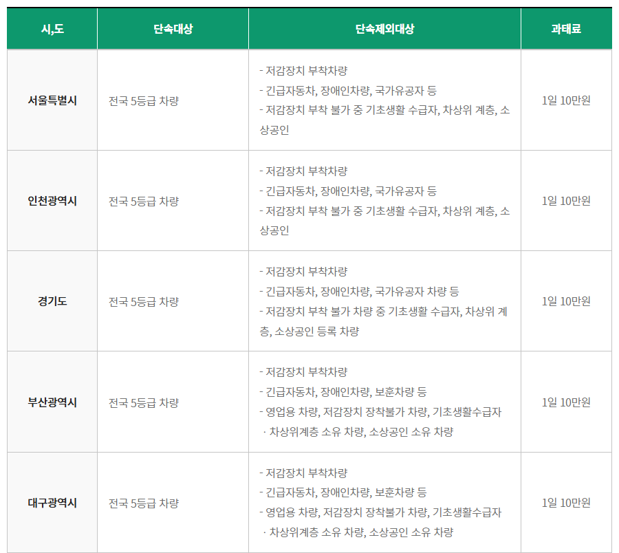 | 유형 1 | 배출가스 5등급 차량 | 상시 운행제한 적용 |