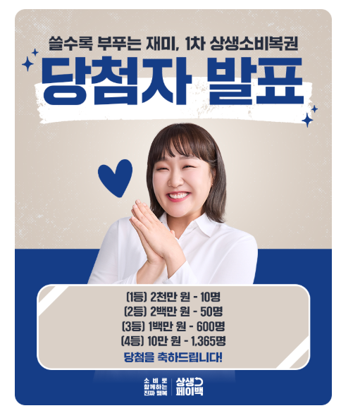 이번 1차 이벤트에서 총 2,025명이 당첨되었으며, 1등 당첨자에게는 무려 2,000만 원이 지급되는 등 규모와 파급력이 예사롭지 않습니다. 단순한 소비가 지역경제 활성화로 이어지고, 소비자는 보상과 혜택을 얻는 구조가 마련되었다는 점에서 그 의미가 더욱 큽니다.