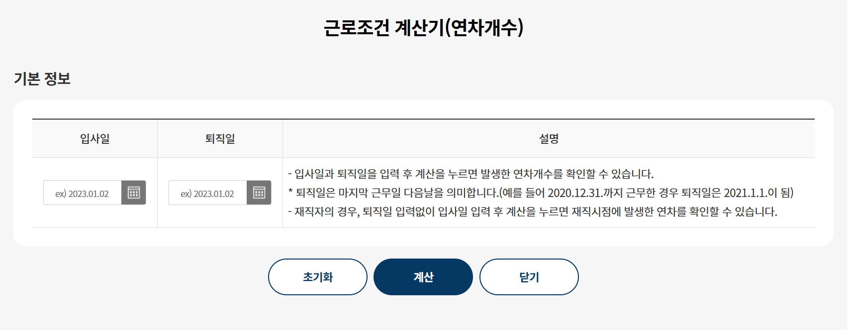 입사일과 퇴직일을 넣어서 연차개수를 확인해보세요
