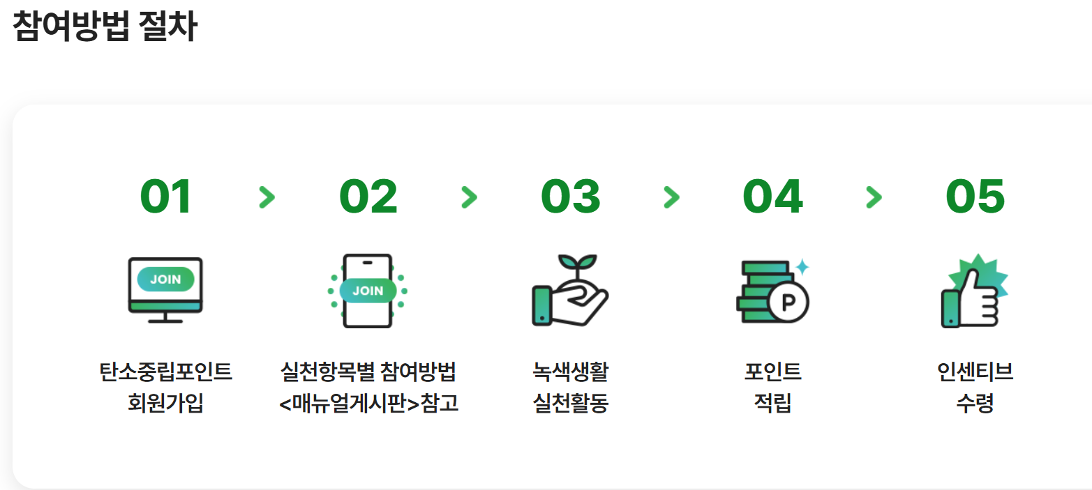 회원 가입과 본인 인증을 완료하고 참여 항목을 활성화한 시점부터 실천 실적이 인정된다. 전기 절감이나 카드 연계 항목은 데이터 연동 시점 이후부터 자동으로 반영되므로 초기 설정이 중요하다.