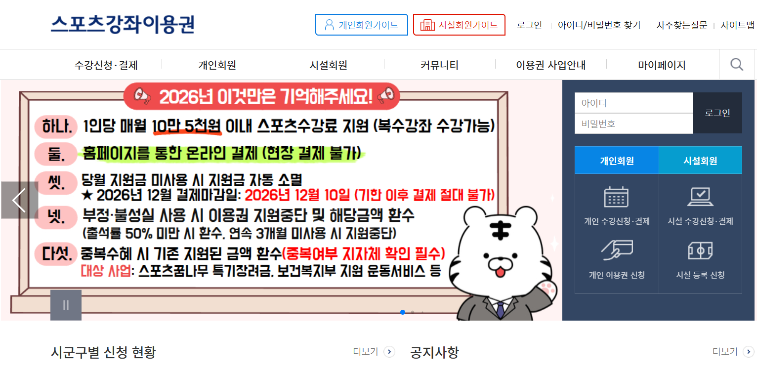 동일 목적의 체육 바우처와는 중복이 제한될 수 있습니다.